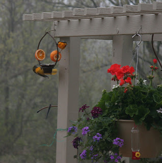I was only able to lure in orioles one year. I think my dogs kept them away. This year we don't have any pets since Jackie's passing three weeks ago. I put out oranges but it might have been too early. I'd better give it another go.